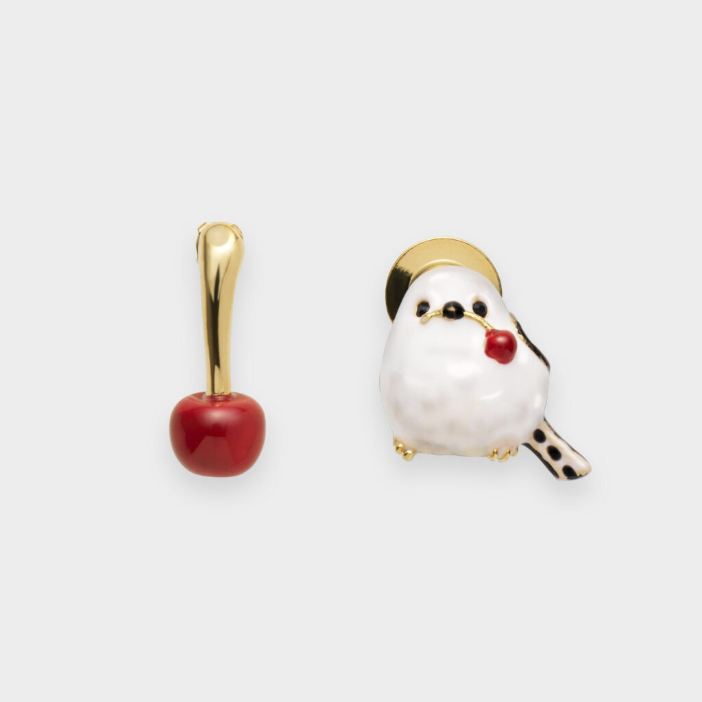 ふわふわの真っ白い羽毛にまん丸シルエットが愛らしいシマエナガと瑞々しい赤い実の2点セットブローチ。 温かみのあるホワイトに、フレッシュなピュアレッドカラーが程よいアクセントをプラス。 重ね着けしやすい程よいサイズ感も魅力です。