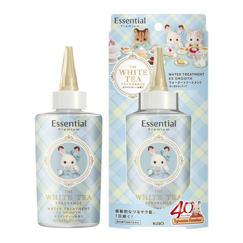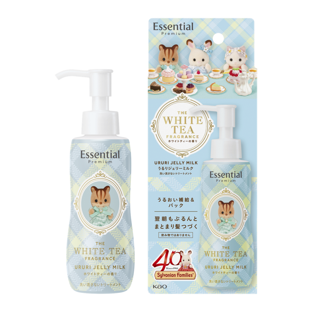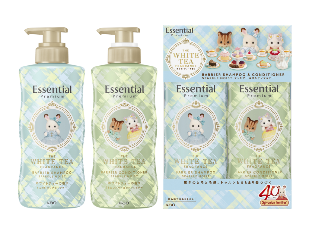 商品ラインアップは、「Essential Premium」シリーズの「バリアシャンプー&コンディショナー スパークルモイスト」ペアセットと、「ウォータートリートメント EXスムース」「うるりジェリーミルク」「うるりキラリオイル」です。今年はホリデーシーズンに合わせ、40周年のメモリアルイヤーを迎え、世代を問わず愛される「シルバニアファミリー」とコラボした限定デザインでお届け。パッケージデザインでは、「シルバニアファミリー」のお人形たちが素敵な洋服をまとい、みんなで楽しくティーパーティーを行う姿を描いています。おしゃれを楽しむ機会も多くなるクリスマスから年末年始にかけてのホリデーシーズンに、「どこか楽しく、どこかホッコリ」とした"ときめき″を提供してくれます。