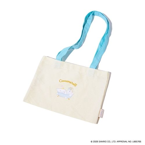 シナモロールと“みるく”がバスタイムを楽しむ様子を描いた、ドリーミーなイラストのコットンバッグ。やさしい世界観が、毎日のお出かけを特別な時間にしてくれます。