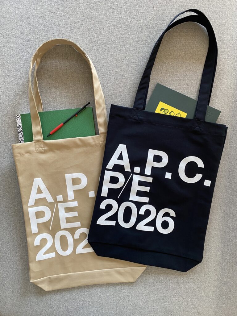 A.P.C.全店(サープラス含)、オンラインストアにてセールアイテム除くアクセサリーアイテム(複数可)を38,500円以上購入頂いたお客様にノベルティトートバッグをプレゼント。