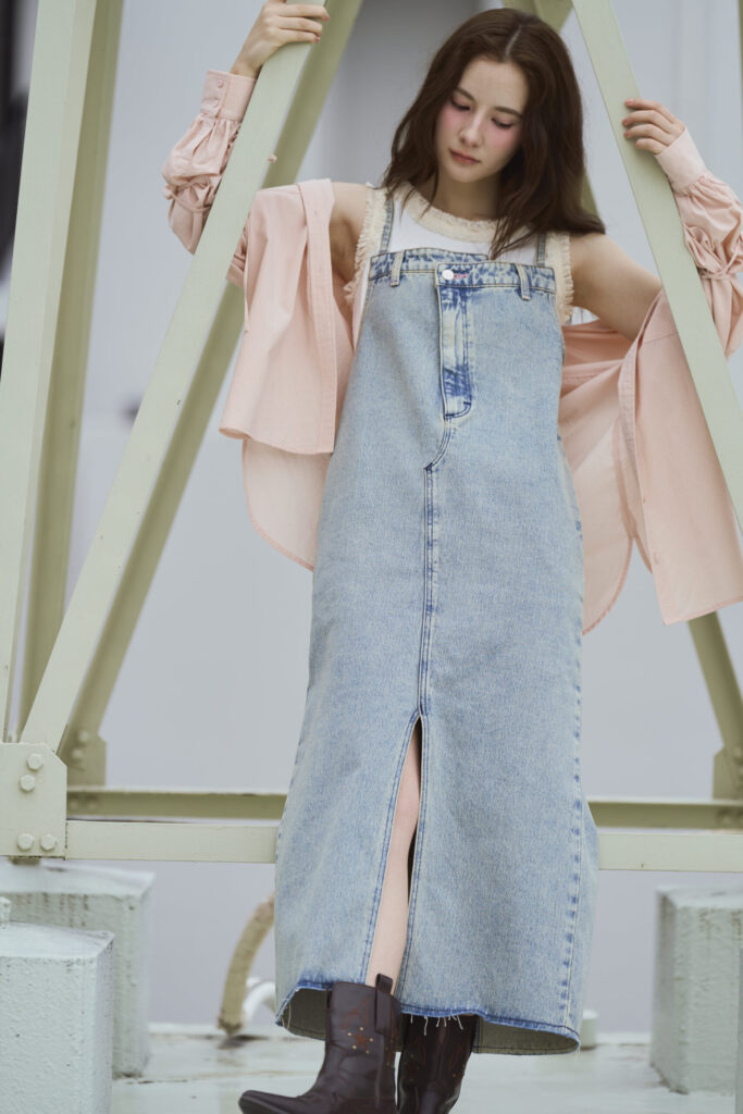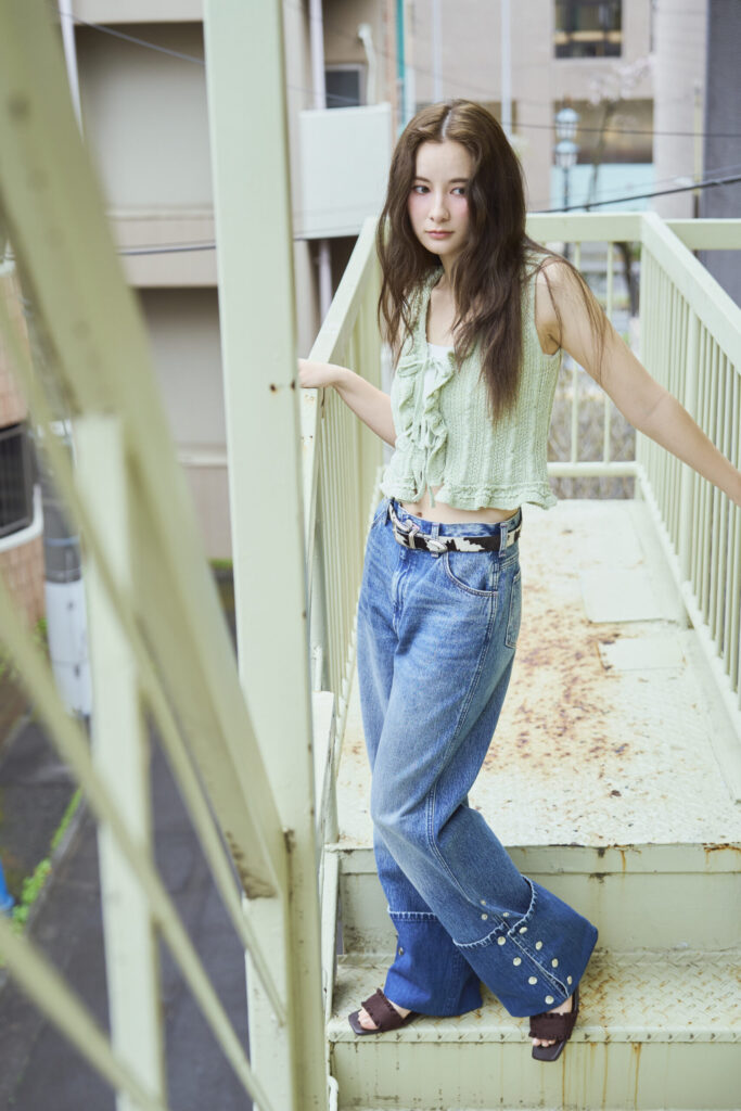 本コレクションは、Wranglerの持つ本格的なデニムの魅力に、カルナムールらしいフェミニンなエッセンスを掛け合わせた特別なラインアップです。ラフさの中にほんのり甘さを感じさせる、デイリーに取り入れやすいスタイルを提案しています。