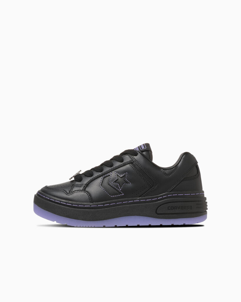 本コラボレーションモデルは、「WEAPON(ウエポン)」をベースにアレンジした、プラットフォームソール仕様のシューズです。「WEAPON PLTS OX / ANNA SUI」は、ハリのあるレザーと柔らかなシンセティック素材を組み合わせたアッパーを採用したスニーカータイプ。