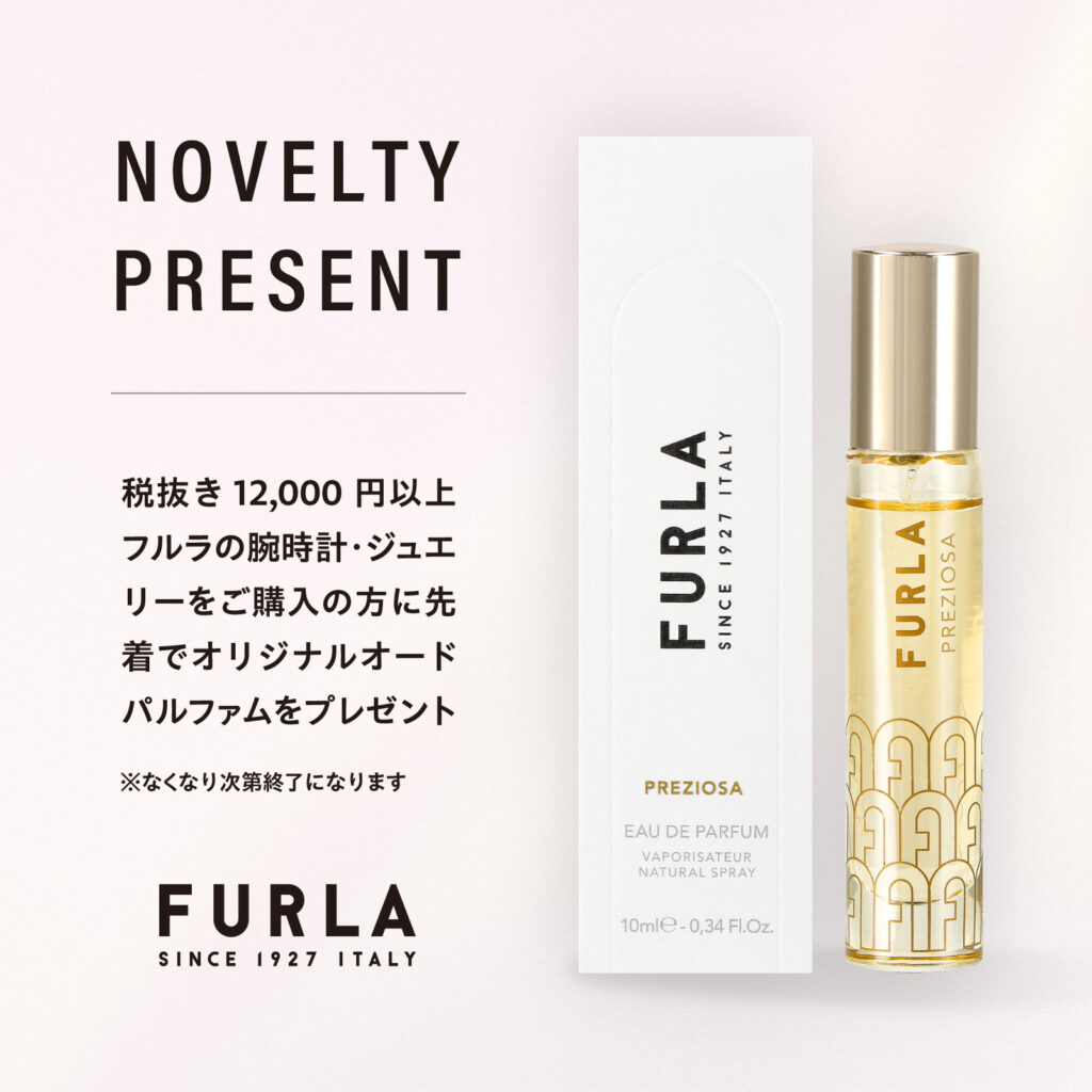 時計販売店/WORLD WIDE WATCH にてFURLA(フルラ)の腕時計・ジュエリーを12,000円(税抜き)以上ご購入いただいた方に先着でオリジナルオードパルファムをプレゼント。