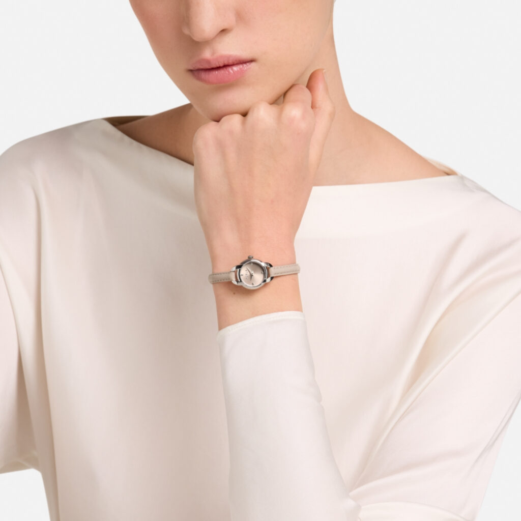 アクセサリー感覚で楽しめるミニマルサイズ。女性の手首にすっと馴染み、軽やかに着けられる華奢なフォルムです。
