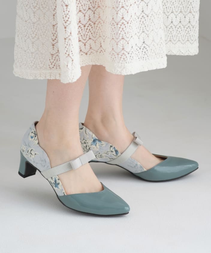 ・リボンゴムストラップフラワーカットパンプス 価格: ¥8,690(税込)