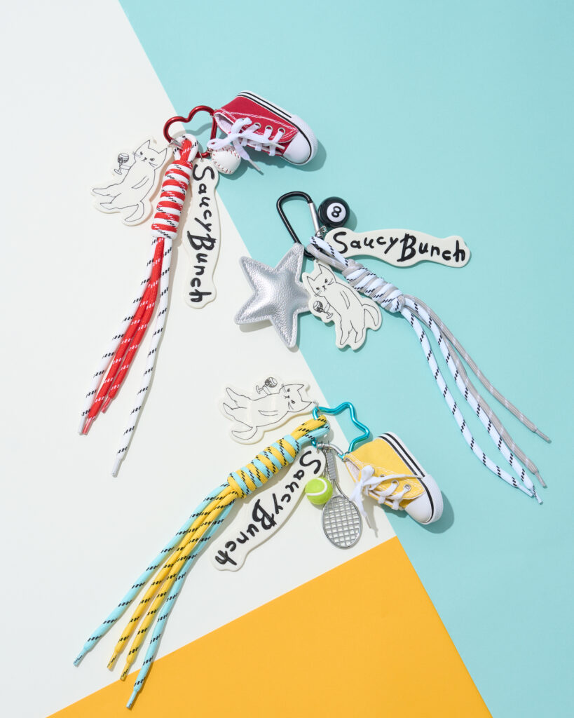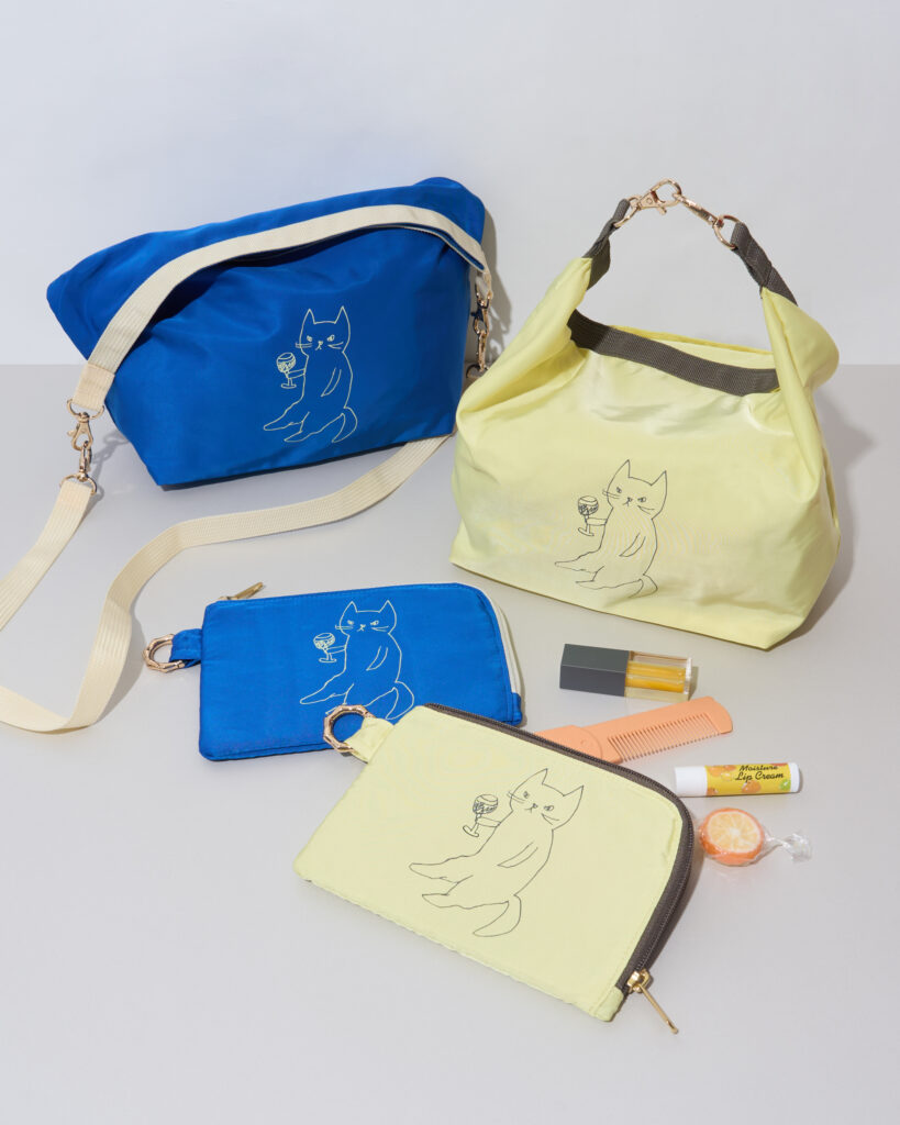 そんなおちゃめネコが、スニーカーやスポーツモチーフとともに幅広い世代が注目する主役級“バッグチャーム”や、バッグのなかでも目を惹く鮮やかカラーの便利な“バッグインバッグ&マルチポーチ”、そして着心地抜群な綿100%のセットアップ柔らか“ルームウェア”など、さまざまなちょっと気の利くアイテムとしてラインアップ。ご自身用としてはもちろん、ネコを愛する方へのギフトにもオススメです。