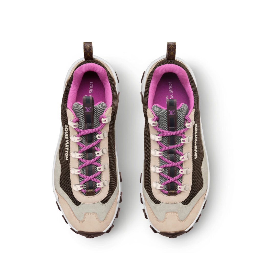 特徴的な波形のフォルムにジグザグ状のデザインを施したチャンキーなラバーアウトソールや、テクニカルシューレースにより、独創的でスポーティなスタイルを演出。サイドにはラバーの「Louis Vuitton」シグネチャーを、背面にはモノグラム・キャンバスのループがあしらわれています。