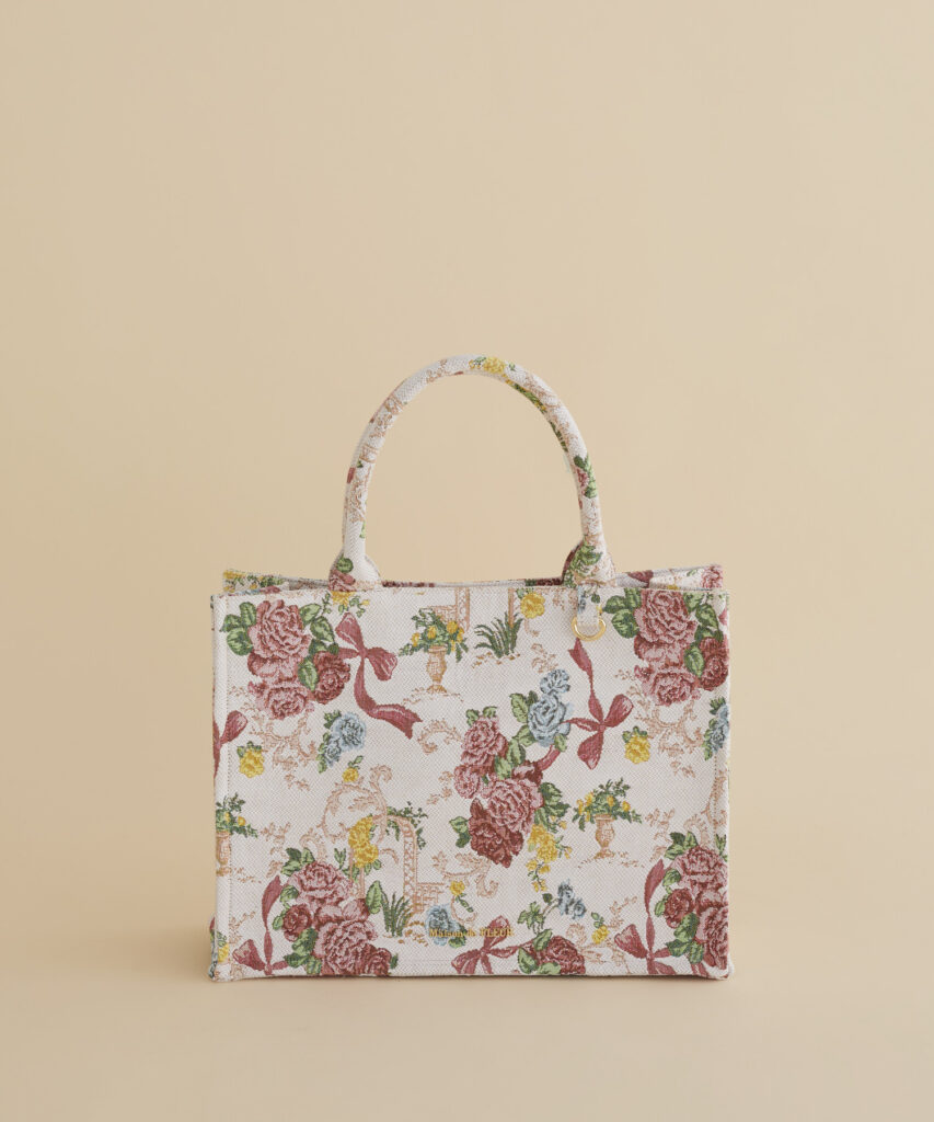 Maison de FLEURの人気コレクションである「ART DE LYS」とのコラボレーションに、第5弾が登場。今回は冬の庭をテーマにした『Jardin Fleurie(フランス語:ジャルダン・フルリ)―花々が踊る、聖夜の祝祭の物語 ―』を、フランス製のゴブラン生地で仕立てたバッグ2型が登場。本コレクションでは、冬を彩る花々がキャンドルのやわらかな灯りに照らされる華やかな情景をイメージ。咲き誇るバラや草木を全体に散りばめ、クリスマスの贈りものを包む赤いリボンを繊細に描いています。ホリデーシーズンの装いに可憐な華を添えるのはもちろん、日常にも自然となじむ上品な佇まいも魅力です。A4サイズ対応のスクエアトートと、軽やかに持ち歩けるコンパクトなショルダーバッグがラインナップします。