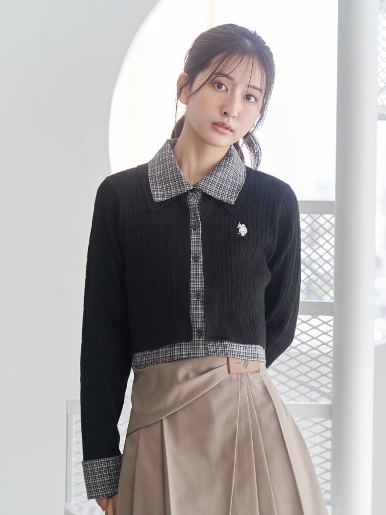 U.S. POLO ASSN.別注コラボシャツレイヤード風ケーブルカーディガン