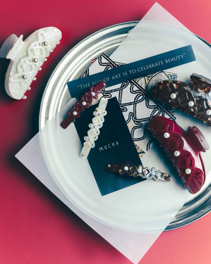 ミュシャが贈るハートコレクション。「トリポリの姫君イルゼ」に描かれたハートモチーフをちりばめ、バレンタインシーズンに向けて仕立てたコレクション。大切な人へ、そして自分自身へ想いを届けるアートピースをご用意しました。