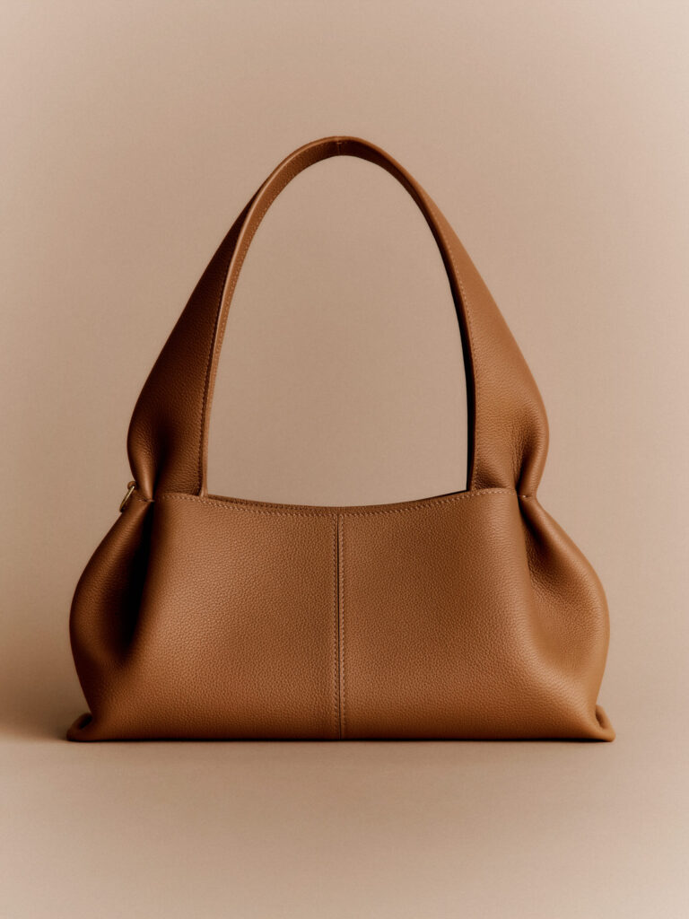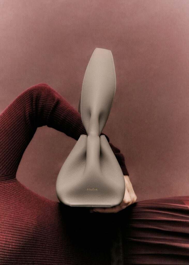 オリジナルの「Numéro Neuf」は2020年に誕生し、現在ではポレーヌの創造的な世界観を象徴するコレクションのひとつ。上質な革が生み出すドレープが描く有機的なフォルムは柔らかさを湛え、美しい調和を織りなします。なめらかな手触りのフルグレインカーフレザーを丁寧に裁ち、緻密に形を整えたうえでハンドステッチを施し仕立てました。カラーはブラック、キャメル、トープ、チョーク、エボニー、ダークチェリー、サンドの7色展開。ストラップはついていませんが、お好みのチャームを取り付けられる金具が装備されています。オリジナルモデルのなめらかな曲線やドレープはそのままに、さらにモダンに解釈した「Numéro Neuf East-West」は、ポレーヌ公式オンラインストア、東京・表参道店にて販売中。スマホ、メガネケース、小さなウォーターボトルなどを収納可能です。