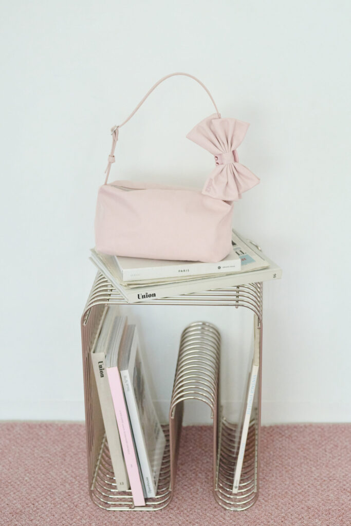 「HOME」ロゴ刺繍が入った、大きなリボンをデザインしたヘアクリップ。クリップ部分はリボンと同色になっていて目立ちにくく、トレンドのリボンモチーフを気軽にヘアアレンジに取り入れられるアイテムです。しっかりと髪をキャッチしてくれる大きさにもこだわりました。