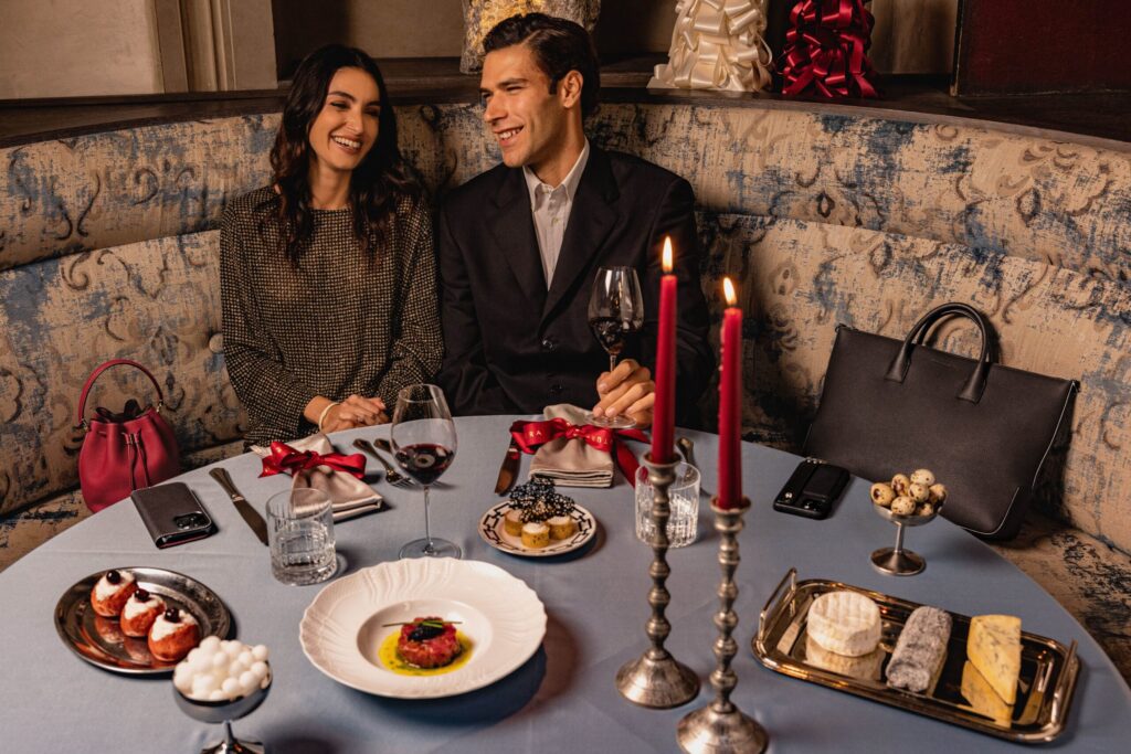 今コレクションは、光とぬくもりをテーマにした3つのテーマカラーで展開。揺らめくキャンドルや暖炉の炎のように心を温かく照らす「レッド」は、クラシックでありながら生命力を感じさせ、ホリデーの高揚感と大切な人への想いを表現しています。落ち着きと安心感をもたらす「チョコレートブラウン」は、レザーの上質さを引き立てつつ、日常にしっとりと馴染む深みのあるトーンが魅力です。そして、街を彩るイルミネーションや夜空に瞬く星のような輝きを思わせる「シルバー」は、ミニマルでありながら華やかさを添え、日常に洗練されたきらめきをもたらします。