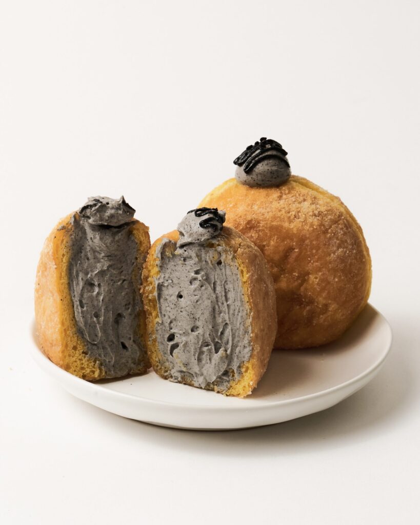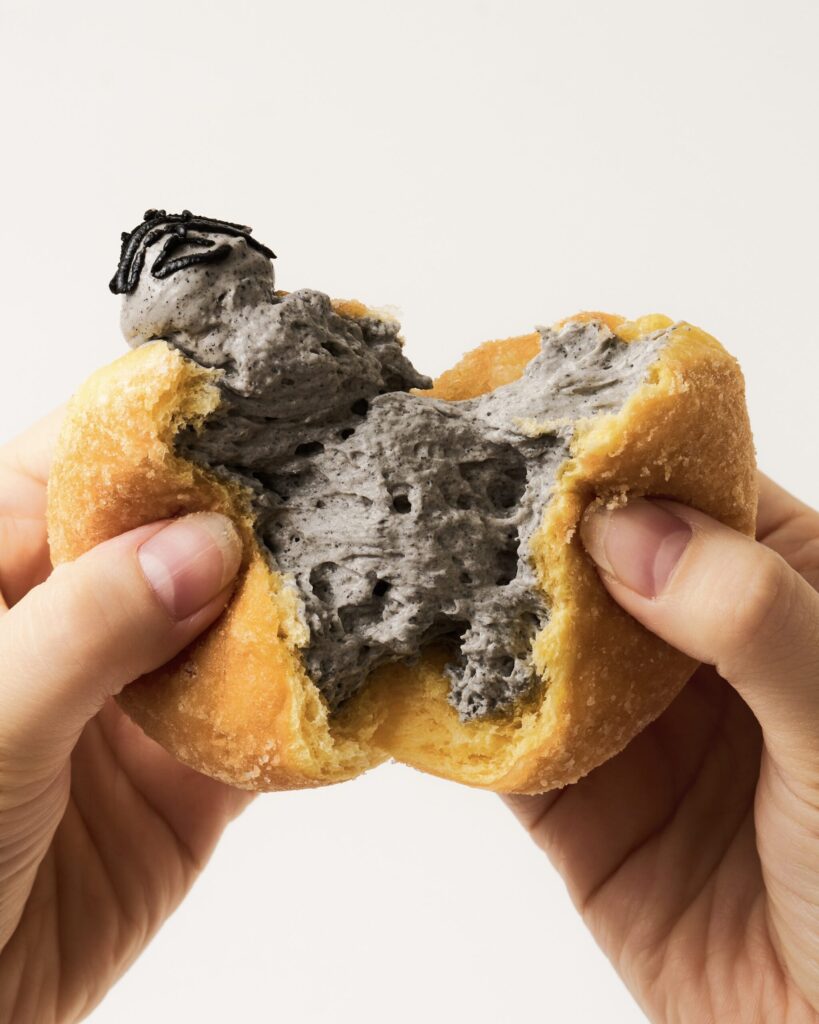 新作「黒ごま」生ドーナツは、黒ごまソフトクリームをイメージした、濃厚で奥深い味わいが特徴です。クリームにはマスカルポーネや生クリームを使用することで、黒ごまの香ばしさとクリームのコクが同時にしっかりと味わえる上品でリッチな風味を実現。すりつぶした黒ごまの香ばしさを閉じ込めたクリームは、濃厚でありながら重さを感じさせない絶妙なバランスにこだわっており、ごまスイーツ好きの方にも心からご満足いただける一品となっています。外側にはきな粉をつけ、トッピングにも黒ごまペーストと黒ごまを使用しているため、まさに“ごま尽くし”の贅沢な味わいが堪能できます。また、黒ごまやきな粉は美容や健康を意識する方にも人気の食材であるため、「甘いものが食べたい、でも体にも気を遣いたい」という方にもおすすめです。