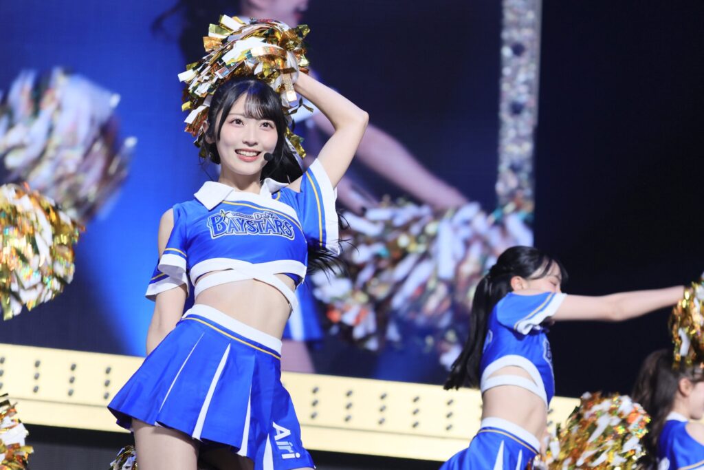 7位の橋本恵理子と山﨑空がWセンターを担った“星が消えないうちに”では、AKB48 U-20選抜メンバーを中心に歌唱。躍動する一人一人のパフォーマンスも魅力的だ。まるで魔法にかかったようなときめきを覚える、眩しい青春の一場面を見ているような感覚だった。次の発表の前に、佐藤綺星が「チアダンスを踊る」という公約を果たそうと、横浜DeNAベイスターズの公式チアリーディングチーム「diana」と“B Stars”を華やかにパフォーマンスしてくれた。6位では、気持ちをウキウキと弾ませるロックンロールチューンの“タイムマシン不要論”を歌唱。メンバーみんなが、今、この瞬間を思いきり楽しもうと弾ける姿が眩しかった。5位にランクインした“晴れ渡る”では、下手ステージで情熱的でパワフルな姿を見せて熱唱&パフォーマンス。ダイナミックなメンバーたちの姿が胸を熱くした。続いて上手ステージで歌ったのは、4位の“抱きつこうか”。メンバーたちはキュートな姿で、恋にときめく乙女の心模様をチャーミングに見せていった。メンバー同士がじゃれ合いながら歌い、最後は5人が互いをギュッと抱き合う姿を見せていた。