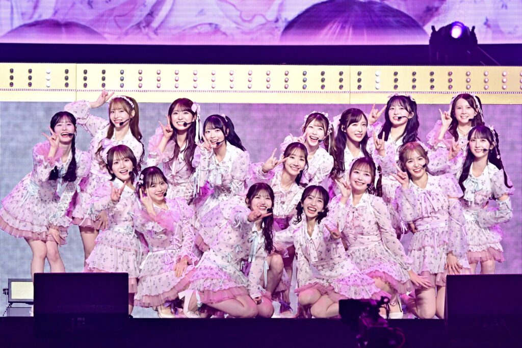 10位にランクインした“ライオンを狙え!”では、かわいらしさを見せつつも、勇気漲る凛々しい様で迫っていった。9位の“知ったかぶりのその下に”では、みずから眩しい輝きを放つように、メンバーらがキラキラとした姿を見せていた。その様に、眩しい青春模様を覚えずにいられなかった。MCでは、岩立沙穂が「新しいニックネームをメンバーに付ける」という公約を果たすために、メンバー全員に付けた新たなニックネームを発表。「向井地美音:ムーチョス」から、「高橋彩音:キューピー」や、「下尾みう:仕事人」という謎のニックネームも。中には、「山崎空:ウルちゃん」のように名前の漢字を上手くもじったニックネームも出ていた。8位の“まさかのConfession”では、冒頭から熱いコールが場内中から飛び交っていた。ウキウキと気持ちをときめかせるカラフルなアップチューンで、場内中も華やかに染め上げていった。ここで、19期研究生全員の昇格を発表。伊藤百花が語った「5人全員で目指していた昇格だったので本当に嬉しいです。この5人で19期としていれたことが誇らしいなと思います」の言葉も印象的だった。