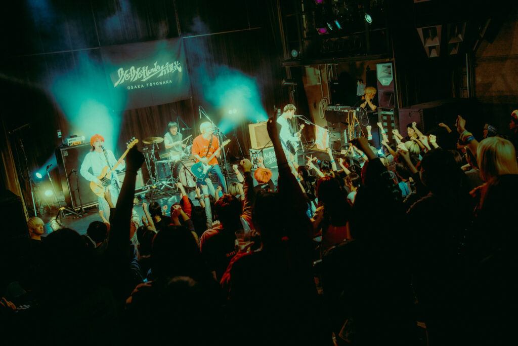 ラストの“midnight parade”を終えて舞台を去り、「ワンモア!」の声に呼ばれて戻ったBye-Bye-Handの方程式は、まず“BEGIN AGAIN”のリリース、そして『僕らは友達には戻らないTOUR』の開催を発表。2026年3月には豊中でのワンマンも行われる。そして4人は「MODEL ANSWER TOUR、大・成・功・だ~!」の声と共に永遠のアンセム“ロックンロール・スーパーノヴァ”をドロップ。大きな歌声の中、同時に跳ねる岩橋と中村。中村が手でシンバルを叩けば、ドラムも笑顔で応える。「どうもありがとうございました!改めて、“ウルトラ面”!」フィナーレかと思いきや、2曲目に入ったアンコール。おまけに“風鈴”も贈り、窒息しそうな音圧の中で週末の夜は過ぎていった。「正真正銘、ありがとうございました!」