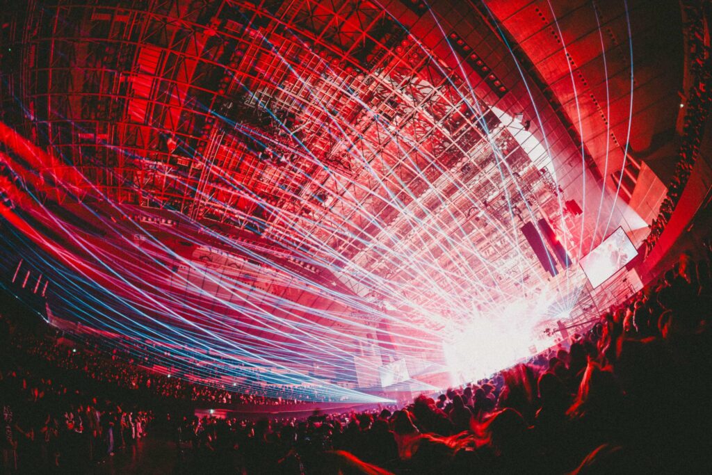 アンコールでは、MiyakoとSacchanが「ステージに来るまでの階段が辛い」「足腰に来る」というなんとも現実的な話や、SORAが浮かれたカップルにつられて夢の国方面に行きそうになった話、千秋が幕張といえばGLAYの伝説の20万人ライヴを思い出すという話など、リラックスしたトークで盛り上がる場面も。“Stranger”をしっとりと聴かせたあとは、“「遺書。」”で再びボルテージ全開。シンガロングパートでは、広大な会場に合唱団のような美しいハーモニーが響きわたり、千秋も「最高です!」と満足顔を見せる。畳みかけるように投下された「「秘密」」で熱狂はさらに加速。オーディエンスが全員しゃがんでヘッドバンギングをする直前に、千秋が「多分今この瞬間、俺たちが世界で一番かっこいい」と早口に、しかし誇らしげに言い放っていたのも印象的だった。「もう頑張れんとき、音楽聴けんとき、それでもDEZERTの音楽を聴こうって思えるような音楽をしたいんで。よろしくな。生きててくれよ、絶対俺の方が早く死にたいから。これは願いじゃなくて、覚悟でもなんでもない。ただ今日ここに集まってくれたあなたと僕らの曲です」。そんな千秋の言葉と共に届けられたのは、“The Heart Tree”。2024年にリリースされたメジャー1stアルバムの表題曲だ。リリース以来ずっと伝え続けてきた、「この場所があなたの居場所になりますように」というメッセージを、彼らはツアーの終着点に改めて刻み込んだ。余韻に浸る間もなく、「ラストです!!」という千秋の雄叫びと共に“「君の子宮を触る」”が繰り出されると、オーディエンスは再び暴れ狂う。千秋がセンターステージへ向かうと、Sacchanも合流。さらに、メインステージにいるMiyakoへ大きく手を振り呼び寄せる。3人が集結したセンターステージで、千秋が「SORAくんも! 心はここにいるから!」と叫ぶ姿は、バンドで結ばれた4人の絆を象徴する光景だった。