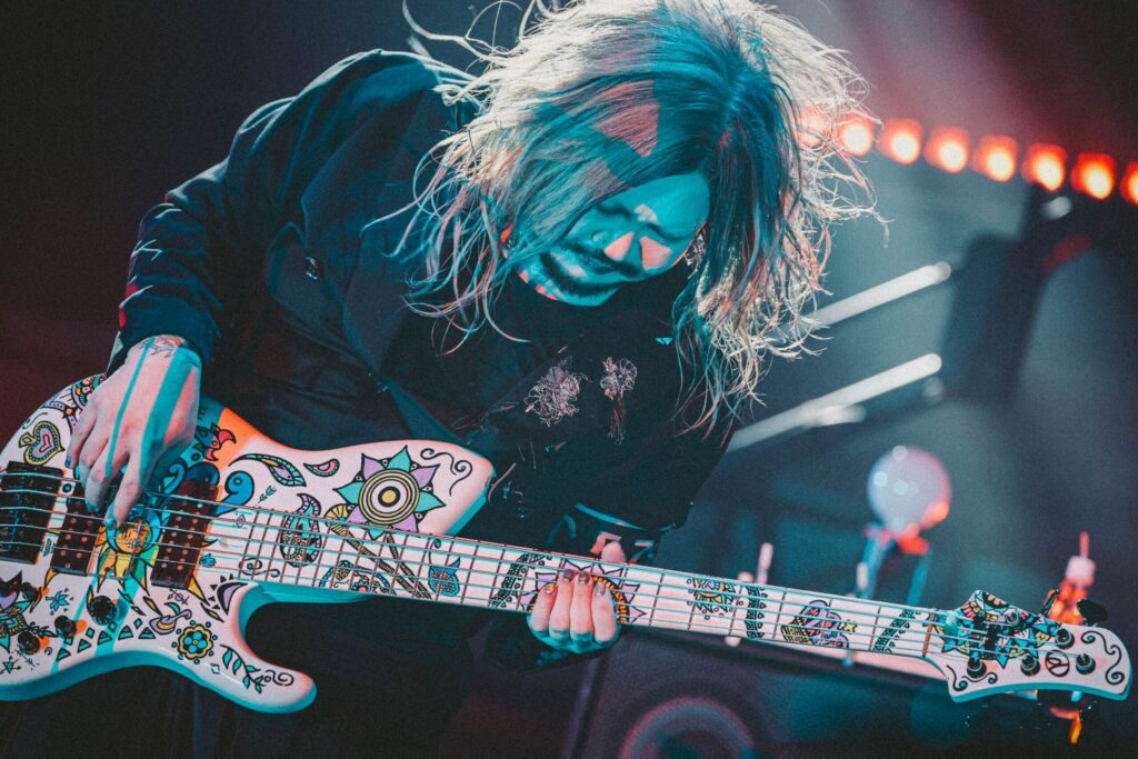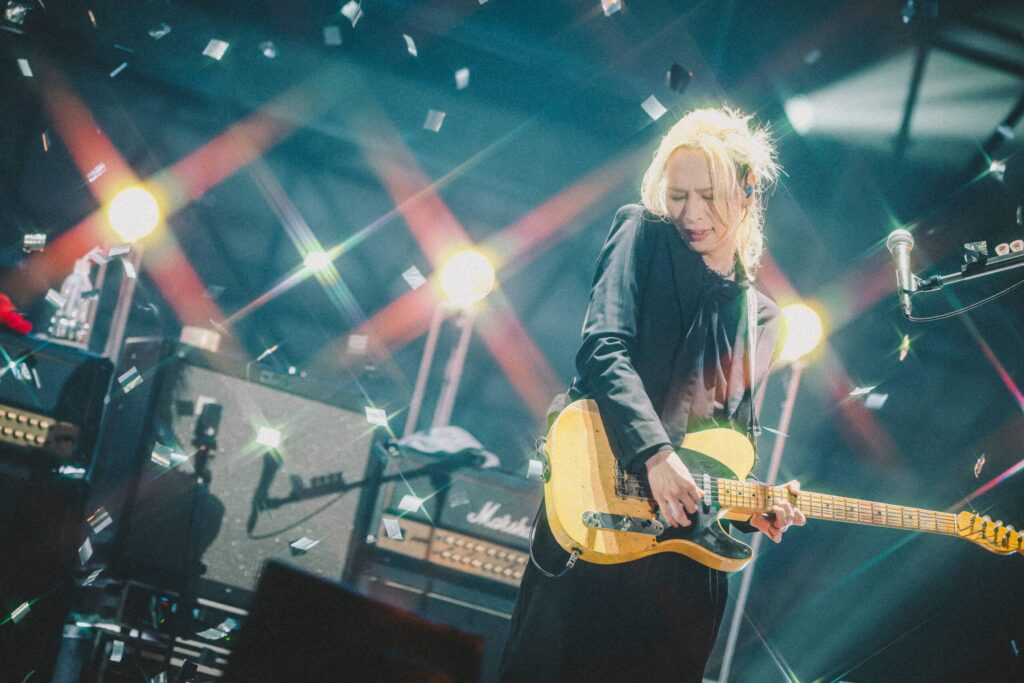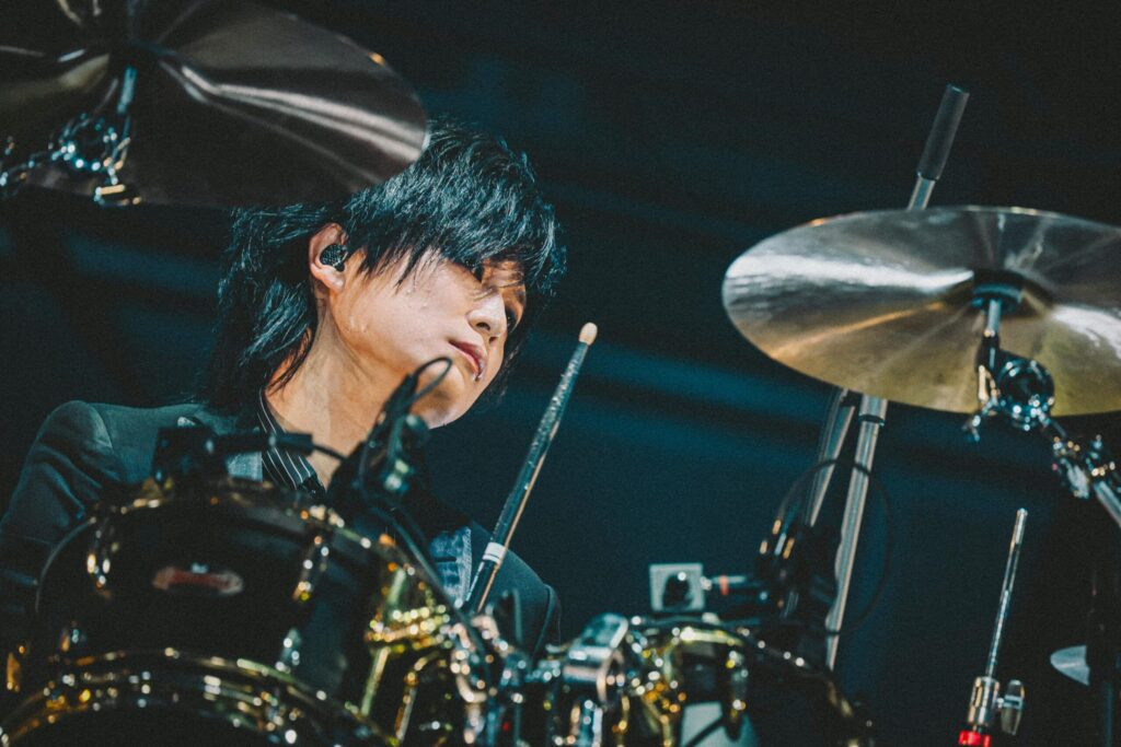 照明でステージが真っ赤に染まると、Sacchanはキーボードを狂ったように弾き、Miyakoは激情をそのまま音にしたような鋭いフレーズを投下。千秋は轟音と狂気に満ちた空間を切り開くように、花道をまっすぐに歩いていき、センターステージでギターを荒々しく掻き鳴らす。そして、SORAの生声での咆哮から“神経と重力”が叩きつけられる。4人の音はうねりを上げ、会場全体を怪物のごとく飲み込んでいく。すさまじい音の嵐に観客は立ち尽くし、この鬼気迫る光景を目に焼き付けるべく、ステージをじっと見つめていた。“My Unhappy Life”、“遮光事実”とハードなバンドサウンドを投下し、ライブのボルテージを上げていくと、“はい!少女”からは広いステージやセンターステージを存分に使ってパフォーマンスを繰り広げる。なお、このセンターステージはツアー初日の千葉LOOKのステージと同サイズであることが後のMCで明かされ、細部にまで行き届いたスタッフの愛情とこだわりが感じられる演出となっていた。“肋骨少女”でセンターステージに出てきたSacchanが、たくさんのスポットライトを浴びながらベースソロを奏でると、オーディエンスは両手を広げてジャンプしながら大歓喜。“Hopeless”ではMiyakoがセンターステージに登場し、片膝をついて華麗なギターソロをプレイ。「生きてるか幕張! かかってこい!」と吠えた千秋は、見えない敵と戦っているかのように暴れ回り、最後には床に這いつくばって蠢きながら、「夢の先に一体何を望める?」と何度も繰り返し呟く。張り詰めた空気のまま、少し長めの沈黙があり、SORAのタフなドラムがゆっくりとリズムを刻みだし、“Call of Rescue”へ。絶望の底から救いを求める姿を生々しく表現したこのフェーズは、オーディエンスの記憶に、鮮烈に刻み込まれたことだろう。