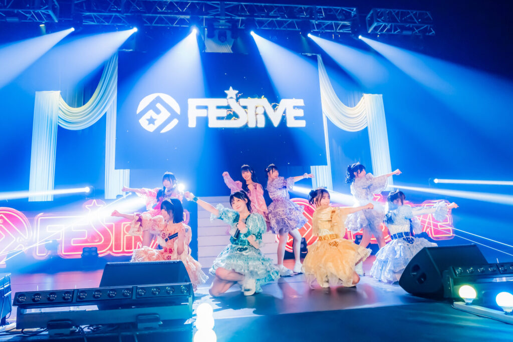 ずっとグループと共に歩んできたからこそ語れる想いを胸に、青葉がタイトルコールしたのは“僕らのフラグメント”。彼女の言葉通り、メンバーもファンもグループへの想いや希望を心に募らせていく。FES☆TIVEへの想いが、より一層際立っていく感覚があった。続く“青春ハートビート”を終えると、3月に卒業を控える辻こはるが「次の曲は今日のために作っていただいた曲です。みなさんにとってアイドルはどんなものですか?誰かの憧れになりたくて、夢を叶えたくて、たくさん悩んでたくさん立ち止まって、それでもここに立ち続けてきました。今日はみなさんと私たちでアイドルを完成させませんか?」とみんなに問いかけてタイトルコール。そのタイトルコールから始まった新曲“=アイドル”はアイドル自身の視点による葛藤や想いと、ファン側の視点が描かれた歌詞が重なり合う一曲。メンバーとファンにとって「アイドル」とは何なのか。冒頭のインタビューからこのワンマンライブを通して、問い続けられてきたテーマだったように感じる。それでもこのステージに立つ彼女たちは誇り高き「アイドル」であり、ファンにとってもかけがえのない存在だと全編を通して強く実感させられた。本編最後は明るくポジティブなナンバー“ハレとケ!あっぱれ!ジャパニーズ!”で活気に満ちた締めくくりとなった。アンコールでは“夏リア旋律”、“夏に恋して”の2曲を披露し、力強く歌い、踊り続けながら、アイドルとしてのアイデンティティを示し続ける。