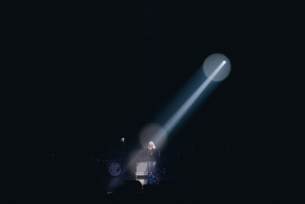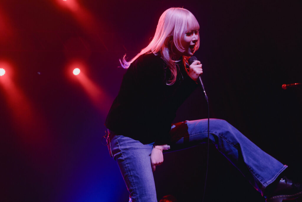 12月13日(土)の夜、東京・EX THEATER ROPPONGI。音以外はいらないと言わんばかりの、バンドセットが沈黙するだけの簡素なステージでは一足先にバンドが登場し、開演の時を待つ。ゆっくり消える客電の中、ギターを持って登場した藤川千愛はマイクスタンドを握り、マゼンタのスポットを浴びて“自律神経”を歌い出す。それが彼女のソロデビュー7周年を記念するライブ『路地裏に残り香』の幕開けだった。「犬と、音楽と、今日ここに集まったみんなをこよなく愛する藤川千愛です!メインストリートから離れて藤川千愛という路地裏に迷い込んでくれてありがとう!」「ずっと余韻が覚めないような最高の残り香をおみやげにするつもりなので、最後まで余すことなく楽しんでいってください」ダウナーな歌声を響かせた後は、真紅のステージに飛び跳ねる“嗚呼嗚呼嗚呼”へ。サーチライトが観客の顔を伺えば、手のひらを広げて歌声に応えるオーディエンス。「今年の汚れは今年のうちに!」の声と共に“ゴミの日”へ流れ込むと、ギターを下ろした藤川はステップを踏んで観客の声を堪能する。天を仰ぐギタリストに、後ろ足を蹴り上げるベーシスト。ソリッドなベースから直線的なライトが乱舞するハードな“四畳半戦争”には、スモーキーながら透き通った声が身体の底から湧き上がる。