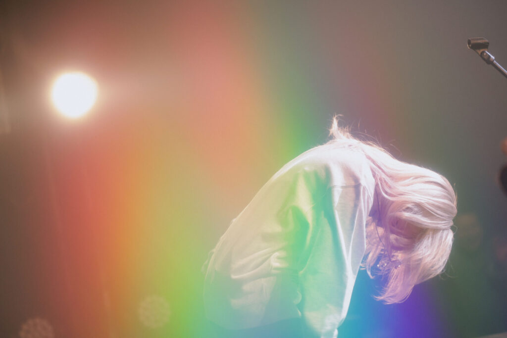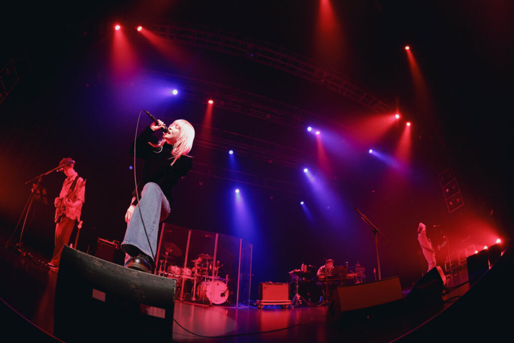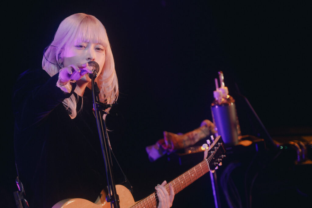 アニメの世界から現実世界の路地裏に戻り、「ChatGPTの性格が辛辣になってきた」と話題を切り出す藤川。「聞き方が悪いのでは」と真っ当なことを言うバンドメンバーに、藤川は「煽り機能がついた?」「地域で変わるとか?」と粘る。「東京の人にだけChatGPTに煽り機能が付いてるって疑いたくもなるよね、東京って怖いな……それでは聞いてください、“東京”」藤川のライブではおなじみの強引なMC前振りから、スタートした“東京”では、アーバンなメロディにクラブを思わせるライトがゆっくり回転し、路地裏に迷い込んだ人々を映し出す。東京の夜景を思わせる歌声は、続く“ブラックコーヒー”でドリーミーに変わる。触れれば壊れてしまうラブソングに、ステージは淡いピンクに染まった。黄昏の中に始まるのは“誰も言ってくれないから”。「誰かに分かってほしいのに その誰かはどこにいるの?」と歌って両腕を広げ、藤川は切に問う。