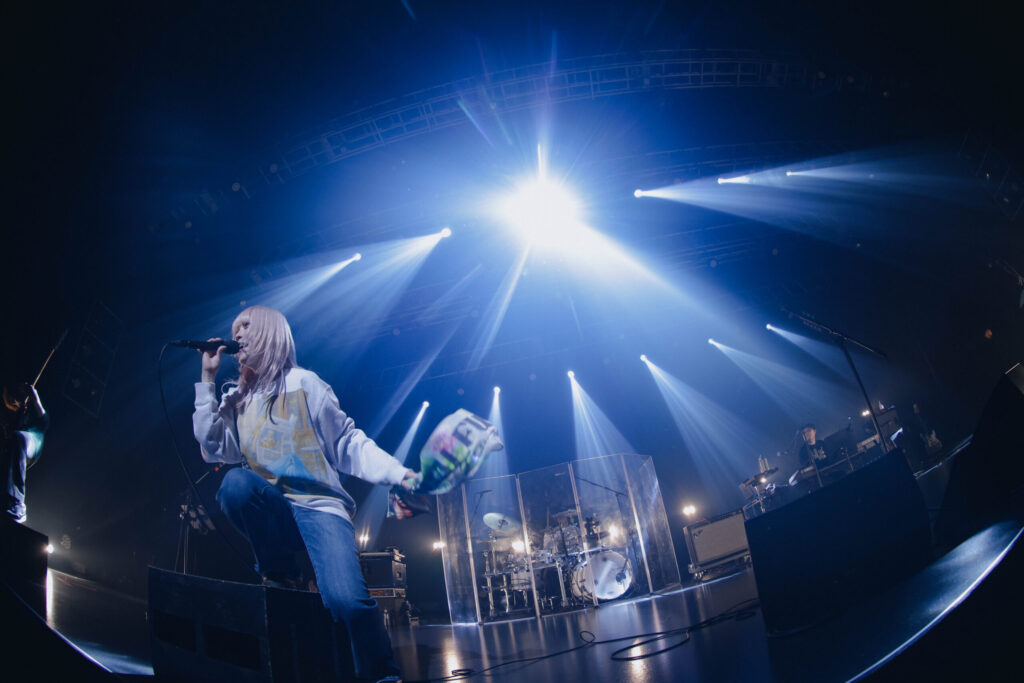 観客からの「ポポポポンチポンチ!」コールに応えて再登場した藤川は、伸びやかな歌声で新曲“祈り”を披露。この道を進む決意を強く歌う幻想的で刹那的な詩は、光の粒となってステージから降り注ぐ。ここで藤川からもうひとつのお知らせとして、先ほど歌唱した“祈り”がアニメ「死亡遊戯で飯を食う。」のエンディングになっていることを発表。あわせてニューアルバム『半径3メートル』を引っ提げたツアーの開催も明かされた。「自分で言うのもなんだけどさ、まっさらな予定に、ポンって予定が入ると、『この日までがんばろう!』ってならん? 一緒にがんばろう!」写真撮影を終えて、アンコールの2曲目は観客のジャンプとクラップにEX THEATERが揺れるクリープハイプのカバー“オレンジ”。橙色の光に満たされたステージで、藤川の笑顔がはじける。そして最後の曲には“hane”が選ばれた。バンドメンバーを紹介し、自身は転びそうになりながら台の上で華麗に一礼する藤川。ジャンプでこの夜を締めくくった彼女の瞳には、これからの未来だけが映っていた。