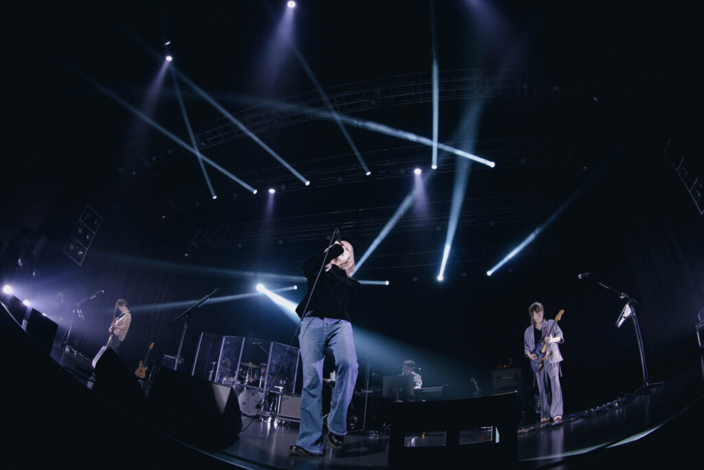 ライブも中盤に入り、ここで藤川は新曲を紹介する。この新曲は大切な人を喪ったひとの心を歌った曲だ。「昨日までそこにあった温度とか、ふと触れた小さな痕跡とか。もう戻れないとわかっていても、心だけが何度も帰っていく。進まなきゃって思っていても、世界が灰色に見える。どこかに置き去りにされたみたいに、時間の流れから自分が外れてしまったように感じることもある」この曲の主人公は、そんな気持ちを抱えたまま、痛みすら手放せず、記憶をつなぎとめるように生きているのだという。「もし今、同じように苦しんでいる人がいれば、この曲を聴いている時間だけは、強がらないでほしいなって思います。痛みがあるってことは、それだけ深く愛しているっている証だと思っています。聴いてください、“なんどでも”」そう紹介された“なんどでも”は、どうしてだか明るいメロディを持つ曲だった。5+6の複雑な拍子とリズムの浮わつきは、喪失を受け入れられない心を表しているのか。伸びやかなファルセットは美しい悲鳴であり、慟哭だ。初披露ということもあり、バンドとヴォーカルが必死にリズムに食らいついている様も、大切な人を亡くした、どうしようもない気持ちに聴こえる。