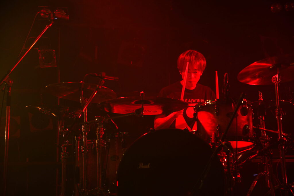 この日のライブ前の出囃子にはジーザス&メリー・チェインが使われていたが、そうした80年代のニュー・ウエイヴや90年代のオルタナティヴ・ロックなどを共通基盤に置いた音楽をやり続けている。年齢も出自も音楽指向も違う、ひとかどのミュージシャンたち。それぞれを中心とした円が交わるスペースがgeekの音楽となる。そしてここがバンドというものの面白さだが、geekのロックは、メンバーがそれぞれ別に運営・参加しているバンドやプロジェクトとの音楽的共通点がありつつも、組む相手のメンバーによってここまで大きく変わるものかと驚かされる。たとえばニュー・ウエイヴに影響されたロックという意味ではyukihiroのL’Arc-en-Cielとの共通項はあるが、L’Arc-en-Cielのような劇的で完成度の高い作り込んだエンタテイメントとはまったく異なる、素朴でストレートな歌心を感じさせるロックで、yukihiroのプレイも、ACID ANDROIDやPetit Brabanconで見せるクールだったりエモーショナルだったりエキサイティングだったりするプレイからは想像もつかないような穏やかなドラムが聴けたりする。曲によって歪んだギターが激しくうなりをあげるようなかなりハードでノイジーな演奏も展開するが、同じトリオといっても百々のMO’SOME TONEBENDERのようには決してならない。