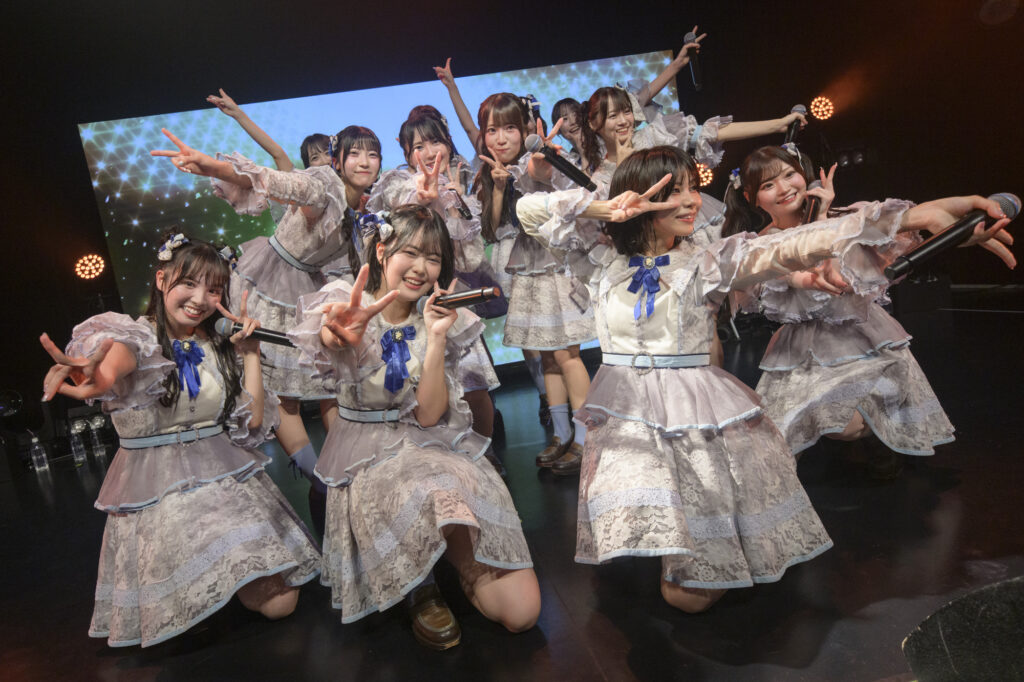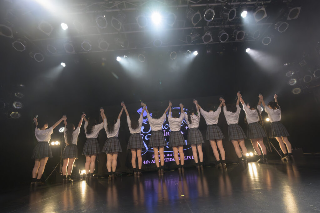 本編の余韻に浸る間もなく、盛大なカレアイコールが沸き起こると、熱いアンコールを受けて、Tシャツとスカート姿のメンバーが再びステージに登場。12人体制の原点とも言える“少女たちとアイボリ ー”でアンコールはスタートし、さらに、メンバー同士の絆やファンとの絆を感じさせる“チームメイト”へと続く。最後に12人が並んで手を繋いだシーンでグッときたファンも多かったことだろう。紆余曲折を経て、5年目の船出に辿り着いた可憐なアイボリー。この12人のメンバー一人ひとりのこれまでの軌跡を証明するようなパフォーマンスとなっていた。アンコールのMCパートでは様々な告知が。来年1月14日(水)にメジャー2ndシングル“消えない”をリリースすること、今回初披露した4周年楽曲“愛の国と星のダンス”が10月15日(水)に配信リリースされること、10月19日(土)からスタートする全国ライブのタイトルが『可憐なアイボリー 2ndSGリリース 記念全国ライブ ~消えない~』に決まったことなどが発表された。そして、ファンとの写真撮影とTikTok撮影が行われると、アンコール最後の1曲、寺本による「5年⽬も共に戦ってください」という煽りから“いつだって戦ってる”へ。最後の「飛び立て 主役だ」という歌詞が会場に響き渡る中、大きな拍手と歓声に包まれて4周年ライブは幕を閉じた。