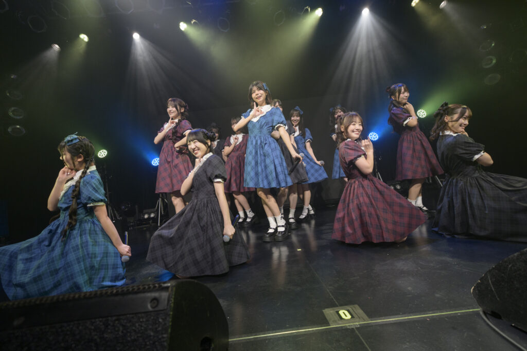 ここで改めてメンバーから挨拶。橘が12人全員での初めての演技を新鮮で楽しかったと振り返ると、永 尾も5年目はさらに様々な挑戦をしていきたいと約束。また、お披露目から1年が経った新メンバー4人を代表して、西原悠桜が挨拶を。とても濃かったというこの1年を振り返りつつ、ファンやスタッフへの感謝の気持ち、ここまで引っ張ってきた先輩メンバーへのリスペクトの思いを語ったところがとても印象的だった。そんな西原の挨拶を受けながら、永尾も「12⼈でアイドルである誇りを持って、夢に向かってこれからも⾛り続けます。5年⽬の可憐なアイボリーを見守っていてください」と語り、“アイドルでよかった。”へ。12人が横一列に並び、1人ずつ一歩前に出て丁寧に歌い繋いでいき、アイドルとしての思いを宣誓しているようなパフォーマンスを披露すると、“不屈のアイドル”と“拝啓ライバ ル”へと続く。ライブで続けて披露されることも多い可憐なアイボリーのアイドルとしてのエモーショナルな部分が全面に表れた2曲だ。この日のパフォーマンスでも“不屈のアイドル”のサビで2つの旋律がクロスしていくところ、“拝啓ライバル”でライバルに立ち向かう姿を歌とダンスで表現、体現したところが特に心に響いた。可憐なアイボリーのアイドルとしての信念やプライドが感じられるブロックであった。