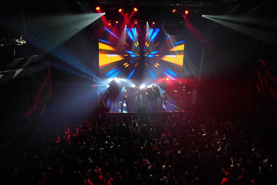 バンドセットになることでグループの底力がよりむき出しとなる“ふたつのことば”に、重なり合う光線の波紋から踊り出す“グッバイ・ティーンエイジャー”。バンドという翼を得て咲き誇るMADKIDは、ステップに現れた個性の違いをZepp Shinjukuの床に刻み付けていく。「歌ってくれ!」の呼びかけにAXCELが応える“konayuki”に、手拍子の中で飛び出す“FLY”。LINは観客の笑顔に表情を綻ばせたかと思えば、次の瞬間にはデスヴォイスでフロアを煽り立てる。MADKIDは長い歴史と波乱の中で磨き上げられた、都会的かつ垢抜けた、しかし泥臭さも併せ持つグループだ。広い音域を持つ歌声を堂々と響かせ、大胆なダンスで魅せるYOU-TA、全ての要素に完璧主義なところを覗かせるSHIN、その歌声でステージから爽やかな風を吹かせるKAƵUKI。細やかな足さばきや振付の中にラップを乗せるカリスマ的なYUKIと、路地裏の空気をかもす激情的なLINといったラッパーふたりの対比も美しい。プリズムカラーに包まれた“No border”では、右往左往してバンドメンバーに絡んだり、エアギターをしたりと、ステージを楽しむ5人。YUKIはステージ際にしゃがみ、ジャンプするAXCELに、「今の2倍跳ぶよ~?」と呼びかける。YOU-TAも「みんな俺より高く跳んでね!」と煽り、Zepp Shinjukuはテンポ良く揺れた。