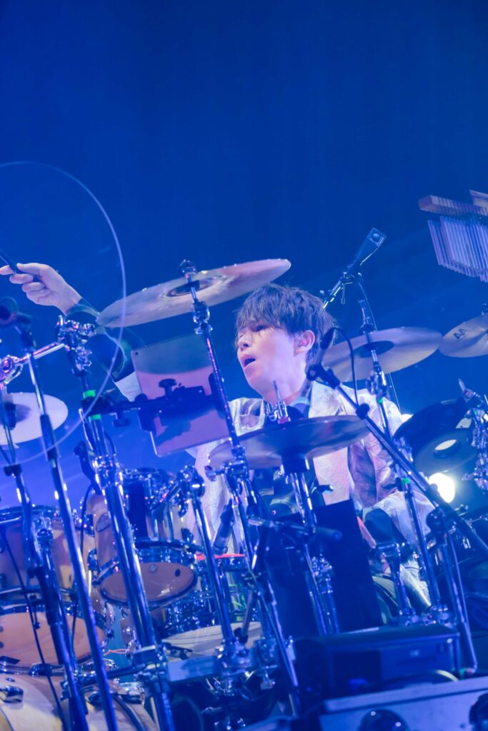 「すげえ盛り上がってんじゃん? 頭から。いいねいいねいいね!」とマオは第一声を放ち、“バーチャル晩餐会”、“cosmetic”を連打。ステージが真っ赤な光で染め上げられ、どよめきを巻き起こした次曲は“林檎飴”だった。哀愁を帯びたメロディーとシンセ音が’80年代テイストの魅力をまき散らすレア曲に、場内は大拍手に包まれた。続くMCではメンバー全員がコメント。トップバッターの明希が「どこの誰がこの豪雨を連れてきました?」と問い、雨男疑惑をとぼけようとすると、ファンは爆笑。ゆうやが明希をコッソリと指さしているのも笑いを誘った。「お足元の悪い中、こんなに素敵な笑顔で迎えてくれてありがとうございます。」(明希)と感謝を述べると、メンバーは拍手で同意。「“こんなに楽しんでる僕・私、自分でも初めてだ”というぐらい盛り上がってください。まだ見ぬ自分と出会って、最高の夜にしようZepp Haneda!」と呼び掛けると、ファンは大きな声で答えた。「見たこともないくらい衣装が派手で、それでも似合っているドラマーを紹介していいですか?ロックドラマー、ゆうや!」とコールされたゆうやは立ち上がると、コール&レスポンスの後、「みんな、この日をすごい楽しみにしてたと思う。でもたぶん俺のほうが楽しみにしてたと思う。1日しかないからね、4月10日って。ツアーじゃないから、今日1日でツアー初日とツアーファイナルみたいな完結をセットリストの中でやっていくんで、付いて来いよ?」と語り掛け、「ぶちかましていこうぜ!」というシャウトで締め括った。