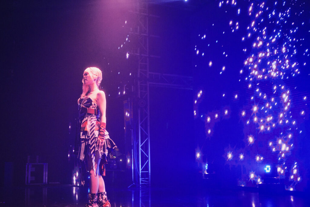 12月も半ばとなって冷え込む水曜日、Soalaがワンマンツアー『Soala ONE MAN LIVE TOUR 2025 ~Color Sprinkles~』のファイナル東京公演を開催した。大阪、札幌、仙台、福岡、名古屋、広島と各地を巡って来たSoala。熱気に満ちる白金高輪SELENE b2には、七色のロゴが輝いていた。定刻になるとスクリーンに映し出されたSoalaがスケッチブックにツアー名を書いて見せる。途端にあらゆる色のインクがぶちまけられたような照明が輝く舞台。そこに歩み出たSoalaは、白いパーカー風のワンピースで“To my 17”をドロップした。「さあファイナル公演、東京!盛り上がれますか~?!」の煽りに、観客は色とりどりのライトを振り、声を上げて応える。真っ暗に沈んだステージに稲妻めいた閃光が走る中、身体で力強くビートを感じるSoalaに観客が歌声を返す“Prolog”。二人のダンサーを呼び込んで宇宙のきらめきの中から未来へ進む“ゼロから”。ふと伸ばされる手は旋律を掴み、胸へギュッと抱く。「みなさんついに来ました『Soala ONE MAN LIVE TOUR 2025 ~Color Sprinkles~』ファイナル公演にようこそ!」3曲を終えたSoalaは観客へ挨拶して、「みんなの感情も全部吐き出して、Soalaにぶつけてください。私もみなさんに全力でぶつかっていきます」と宣言。そして「あの時の苦しかった想いをこの曲にぶつけました。聴いてください」と“My song”を歌い出す。まっすぐ人差し指で天を指すSoala。背景映像もなく、ライトだけのシンプルな舞台の上で、「あの頃」のSoalaと「今」のSoalaが重なり合う。低く歌い出されたのは“Glorious”。何曲もかけて未来へ、未来へと進む彼女は、“自分色”で虹色に包まれる。それは何者かになろうとしていたSoalaが、自分を見つけ、自分を見出した姿に思えた。