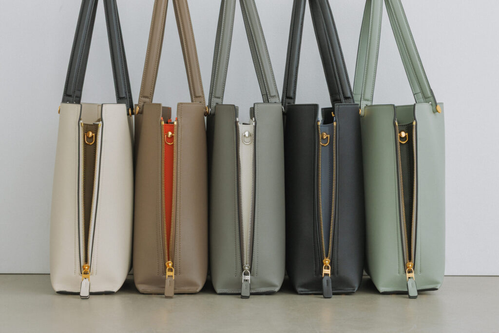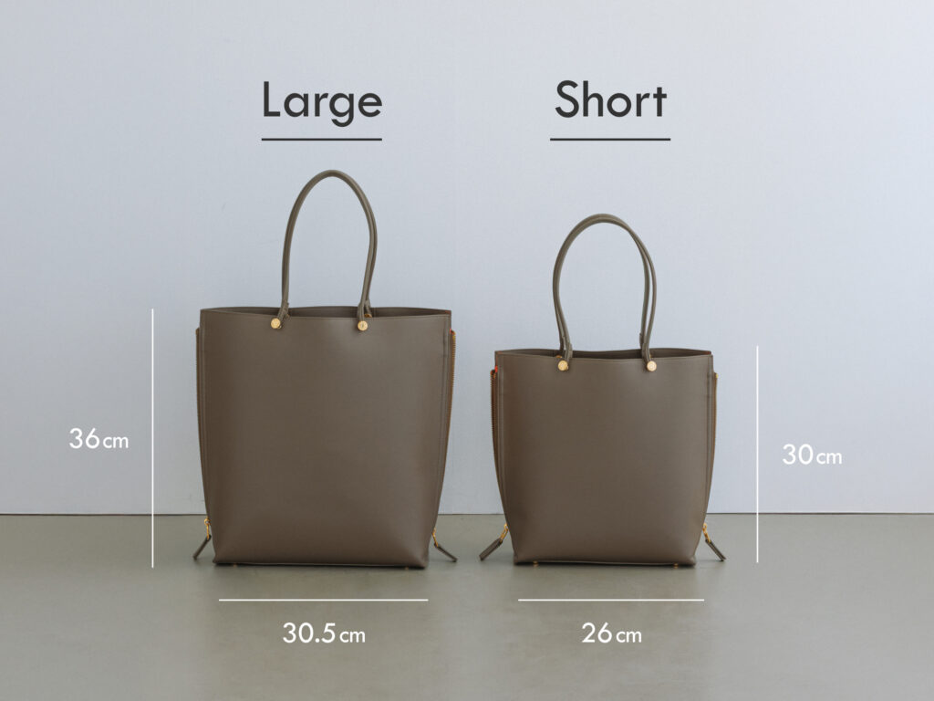「Y BAG」は、スタイリッシュな縦型フォルムで、必要な荷物がしっかり入る収納力が魅力の、スマートでバランスの取りやすいトートバッグです。上品でシンプルな佇まいが、知的な印象を演出します。”Large”は、A4サイズに対応し、通勤バッグとしても活躍するデザインです。この度、”Large”の使いやすさはそのままに、日常使いにも取り入れやすいサイズの”Short”サイズが新たに加わります。